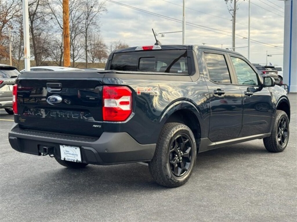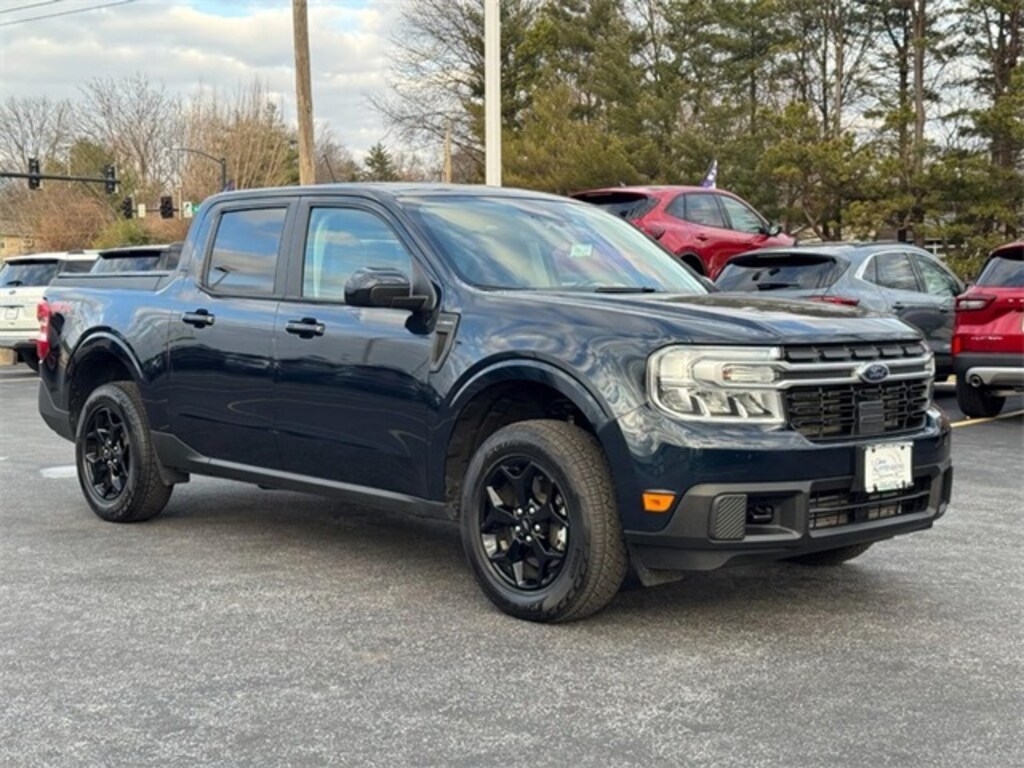 CARFAX One-Owner. Clean CARFAX. Alto Blue Tinted Clearcoat Metallic 2022 Ford Maverick Lariat AWD AWD 8-Speed Automatic EcoBoost 2.0L I4 GTDi DOHC Turbocharged VCT ONE OWNER!!, CLEAN CARFAX!!, 17" Unique Aluminum Wheels, 4-Way Front Headrest, 4-Wheel Disc Brakes, 400W Inverter w/USB Console Rear, 4G LTE Wi-Fi Hotspot Removal, 6 Speakers, 6.5" Productivity Screen in Instrument Cluster, ABS brakes, Adaptive Cruise Control w/Stop & Go, Air Conditioning, AM/FM radio, Apple CarPlay/Android Auto, Auto High-beam Headlights, Automatic temperature control, Bed Tie Down Locking Rails, BLIS Blind Spot Info System w/Cross-Traffic Alert, Brake assist, Compass, Delay-off headlights, Driver door bin, Driver vanity mirror, Dual front impact airbags, Dual front side impact airbags, Electronic Brake Boost, Electronic Stability Control, Evasive Steering Assist, Exposed Front Tow Hooks, Exterior Parking Camera Rear, Ford Co-Pilot360, Four wheel independent suspension, Front & Rear Floor Liners w/o Carpet Mats, Front anti-roll bar, Front Bucket Seats, Front Center Armrest, Front reading lights, Fully automatic headlights, FX4 Off-Road Package, Heated Mirror, Heated Seats, Heated Steering Wheel, Higher Capacity Radiator, Hill Descent Control, Illuminated entry, Knee airbag, Lane Centering, Lane-Keeping System, Lariat Luxury Package, LED Box Lighting, Low tire pressure warning, Manual-Folding Power Glass Sideview Mirrors, Occupant sensing airbag, Outside temperature display, Overhead airbag, Overhead console, Panic alarm, Passenger door bin, Passenger vanity mirror, Power steering, Power windows, Radio data system, Radio: AM/FM Stereo w/6 Speakers, Radio: B&O Sound System by Bang & Olufsen, Rear anti-roll bar, Rear Parking Sensors, Rear step bumper, Remote keyless entry, Remote Start System, SiriusXM Radio, Speed-sensing steering, Spray-In Bedliner, Steering wheel mounted audio controls, SYNC 3 Communications & Entertainment System, Tachometer, Telescoping steering wheel, Tilt steering wheel, Tonneau Pickup Box Cover - Soft Folding, Traction control, Trailer Hitch Receiver w/4-Pin Connector, Trip computer, Upgraded Cooling Fan, Windshield Wiper De-Icer, Wireless Charging Pad.